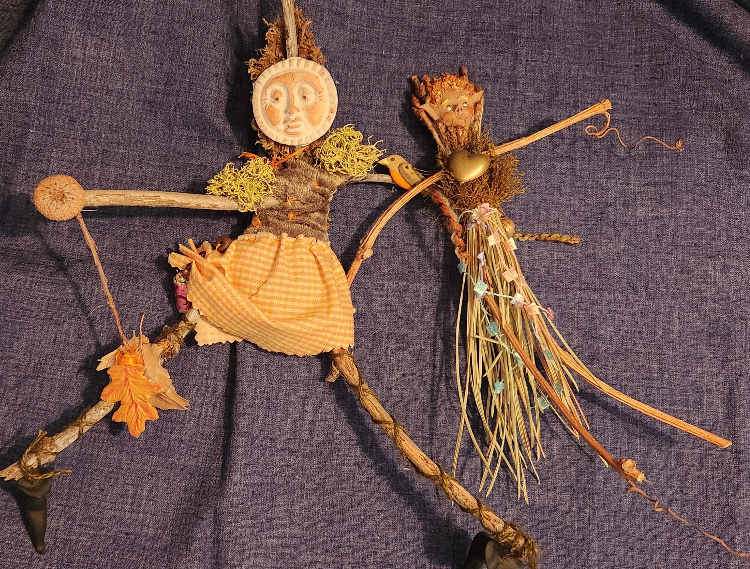 Repeated as requested! Wrap up your hopes, dreams, and best intentions in an easy-to-make art doll. The basic structure is always the same; the basic materials are twigs, fabric, yarn, beads, and polymer clay faces, and yet no two spirit dolls are ever the same. Relaxing to make, and as whimsical or deeply meaningful as you wish.