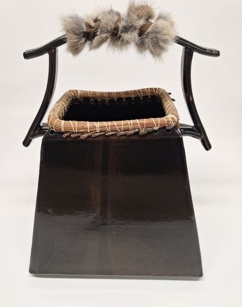 ceramics, pine needles, rabbit fur